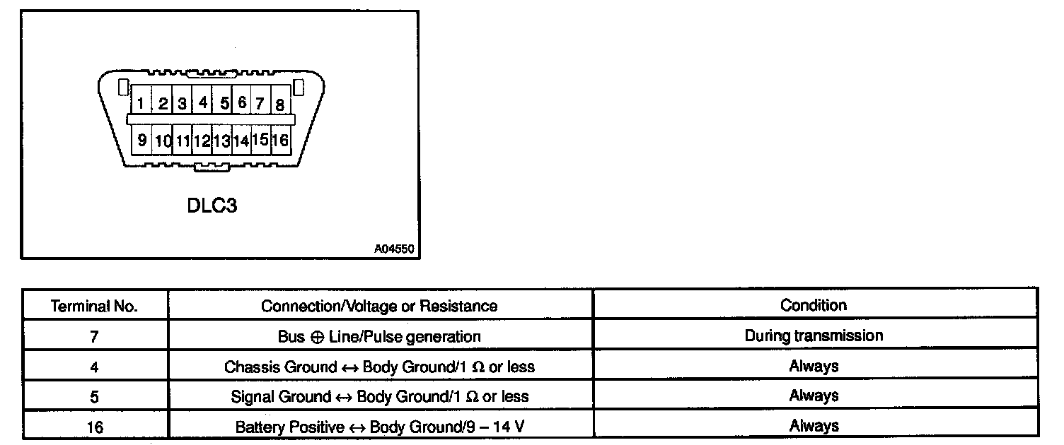 The terminal arrangement of the DLC3 complies with SAE J1962 and matches the ISO 9141-2 format.