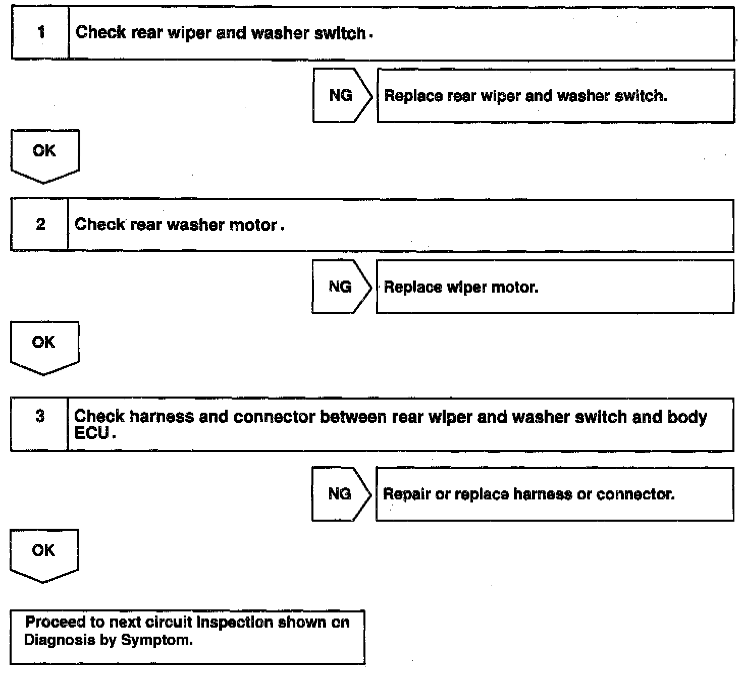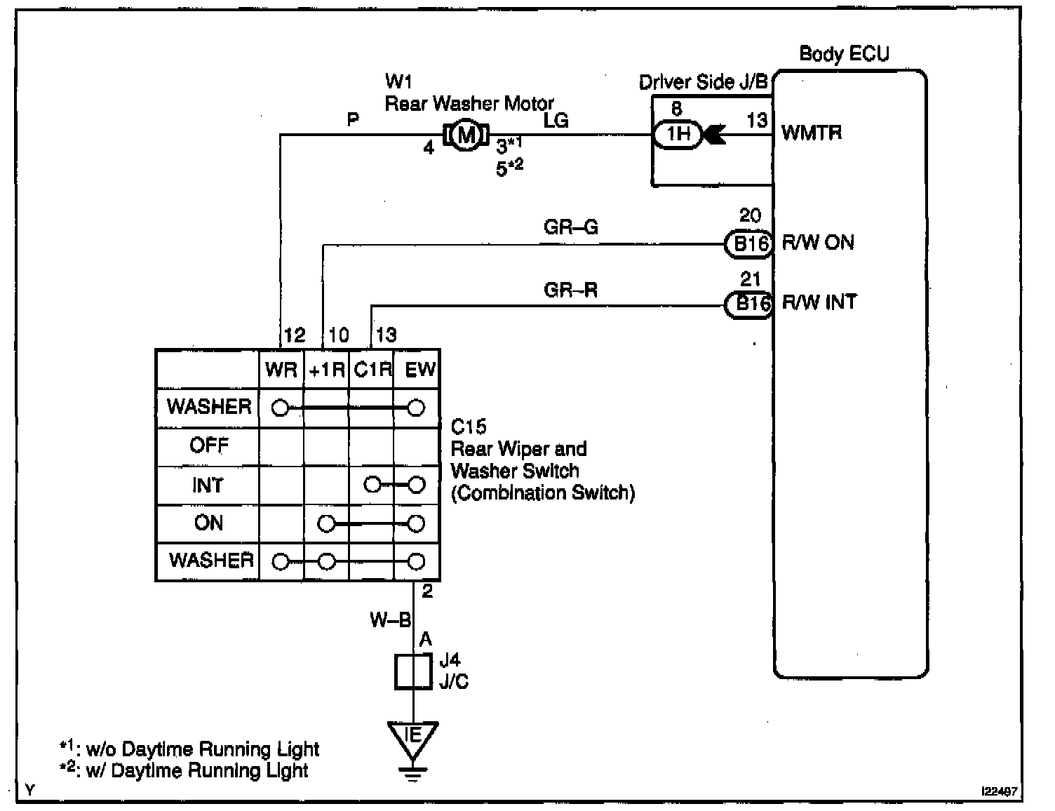 Body ECU judges the switch position with the terminal voltage of the wiper and washer switch and runs the wiper motor.