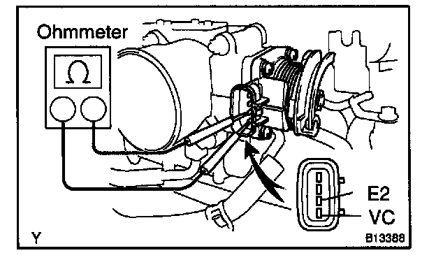 b. Using an ohmmeter, measure the resistance between terminals VC and E2.