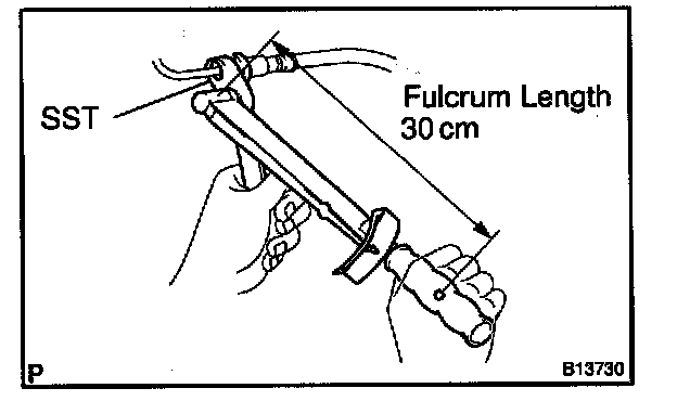 HINT: Use a torque wrench with a fulcrum length of 30 cm (11.81 in.).
