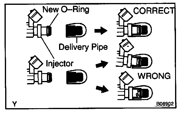 e. Install the injector to the delivery pipe and intake manifold as shown in the illustration.