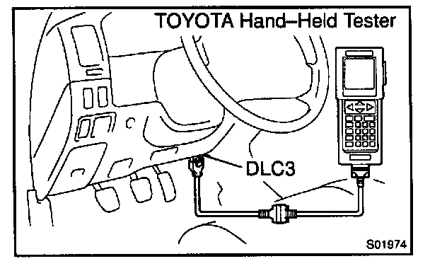 1. Connect a TOYOTA hand-held tester to the DLC3.