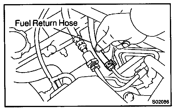 6. Pinch the fuel return hose. The pressure in high pressure line will rise to approx. 400 kPa (4 kgf/sq.cm, 57 psi). In this state, check to see that there are no leaks from any part of the fuel system.
