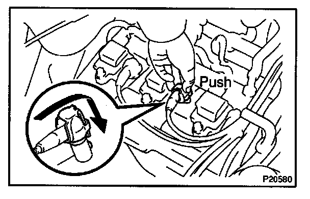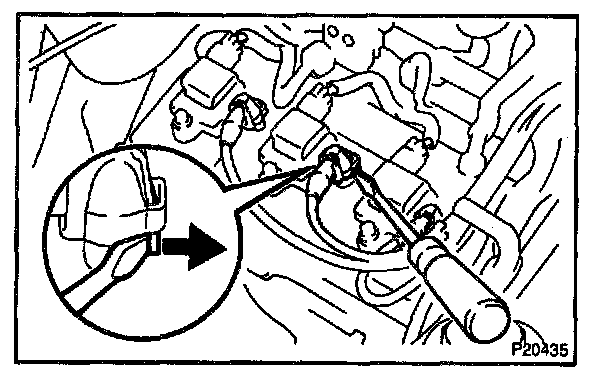 1. Using a screwdriver, lift up the lock claw and disconnect the holder from the ignition coils.