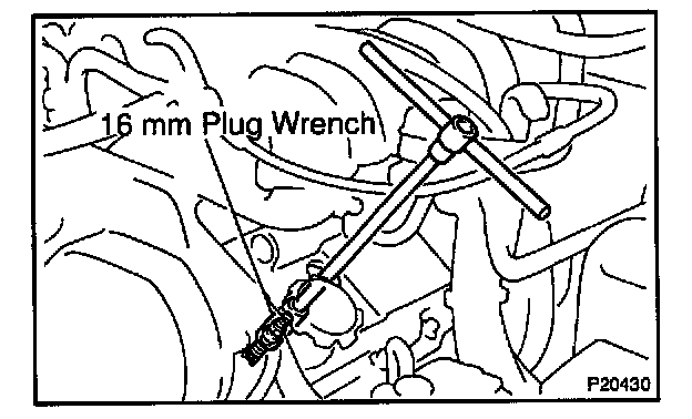 c. Using a 16 mm plug wrench, remove the 6 spark plugs from the RH and LH cylinder heads.