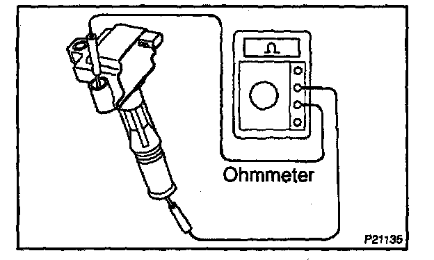 e. Using an ohmmeter, measure the resistance between the positive (+) and high-tension terminals.