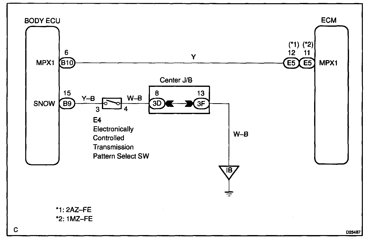 When 2nd start mode is selected with the pattern select switch, the ECM controls the solenoid valves and the transmission starts from 2nd gear.