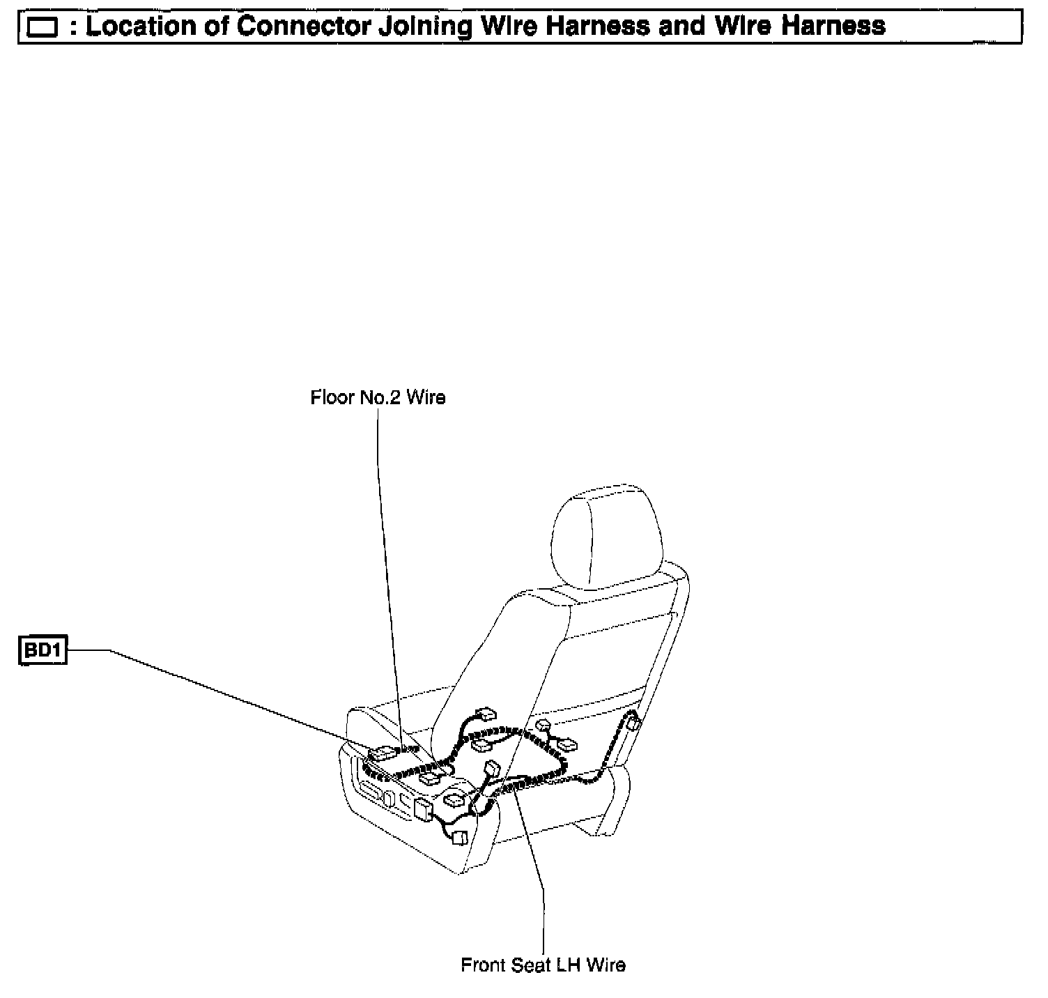 BD1 Floor No.2 Wire and Front Seat LH Wire (Under the Driver Seat)