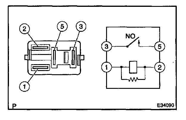 Using an ohmmeter, check that continuity exists between terminals 3 and 5 when the battery voltage is applied across terminals 1 and 2.