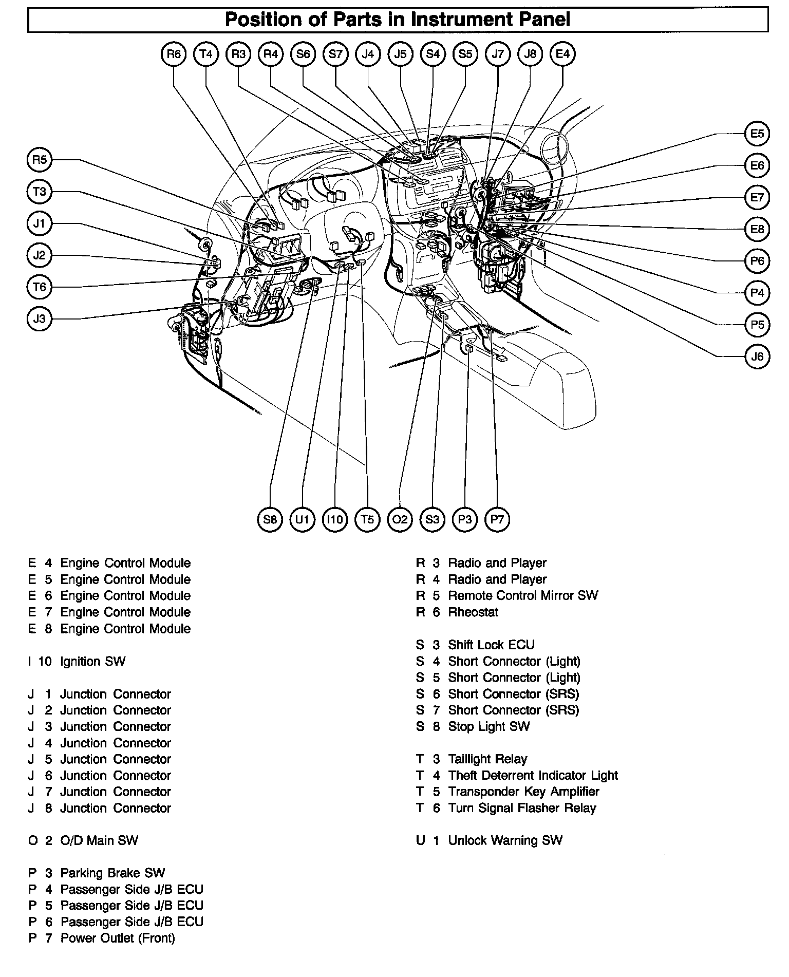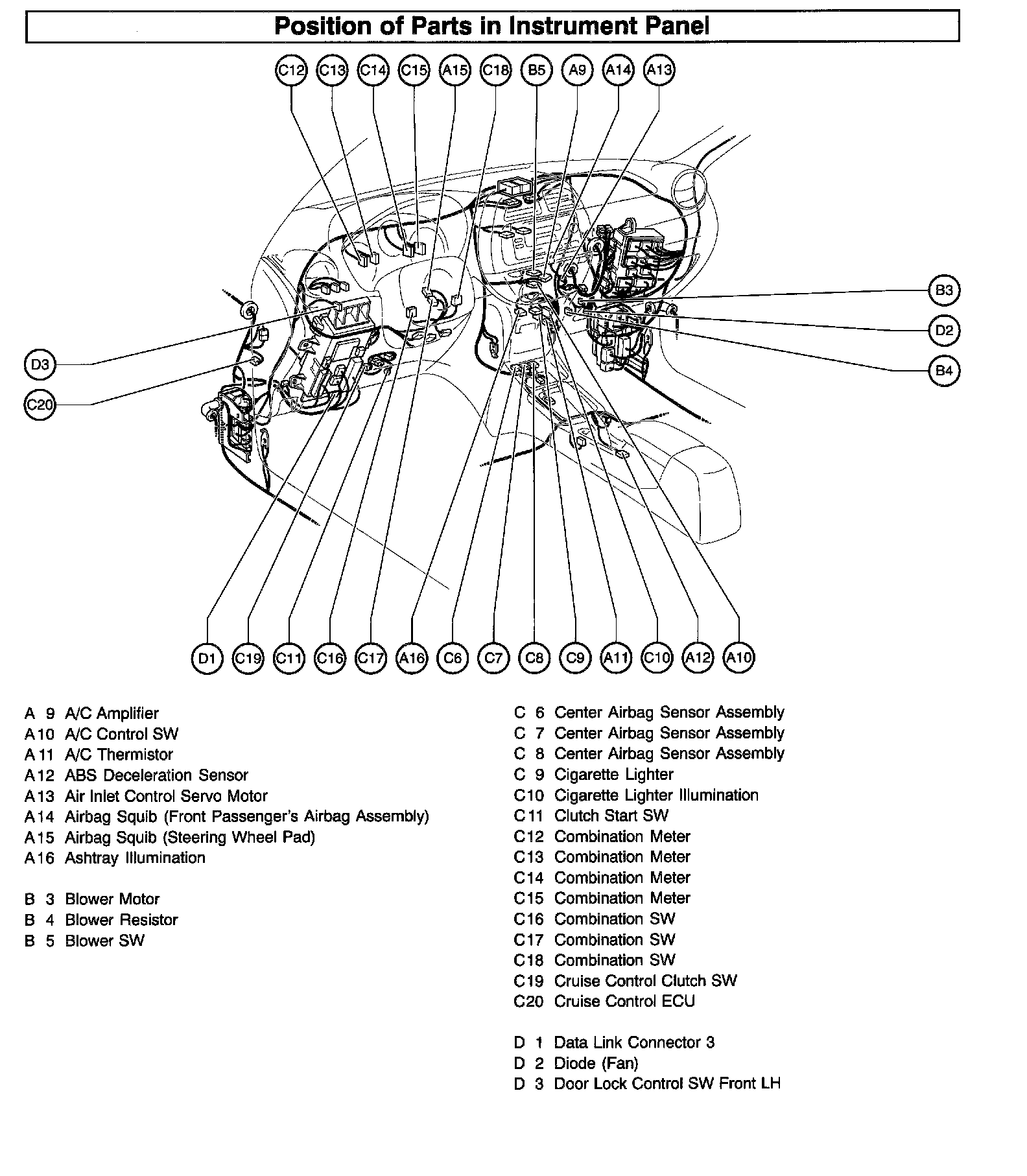 Position Of Parts In Instrument Panel (Part 1):