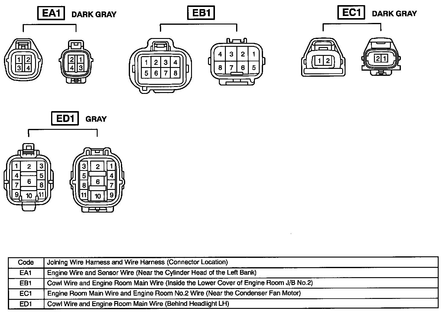Wire Harness To Wire Harness Connectors (EA1, EB1, EC1, ED1):