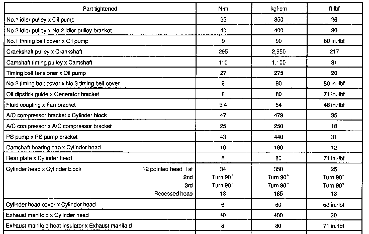 5VZ-FE Cylinder Head Torque: