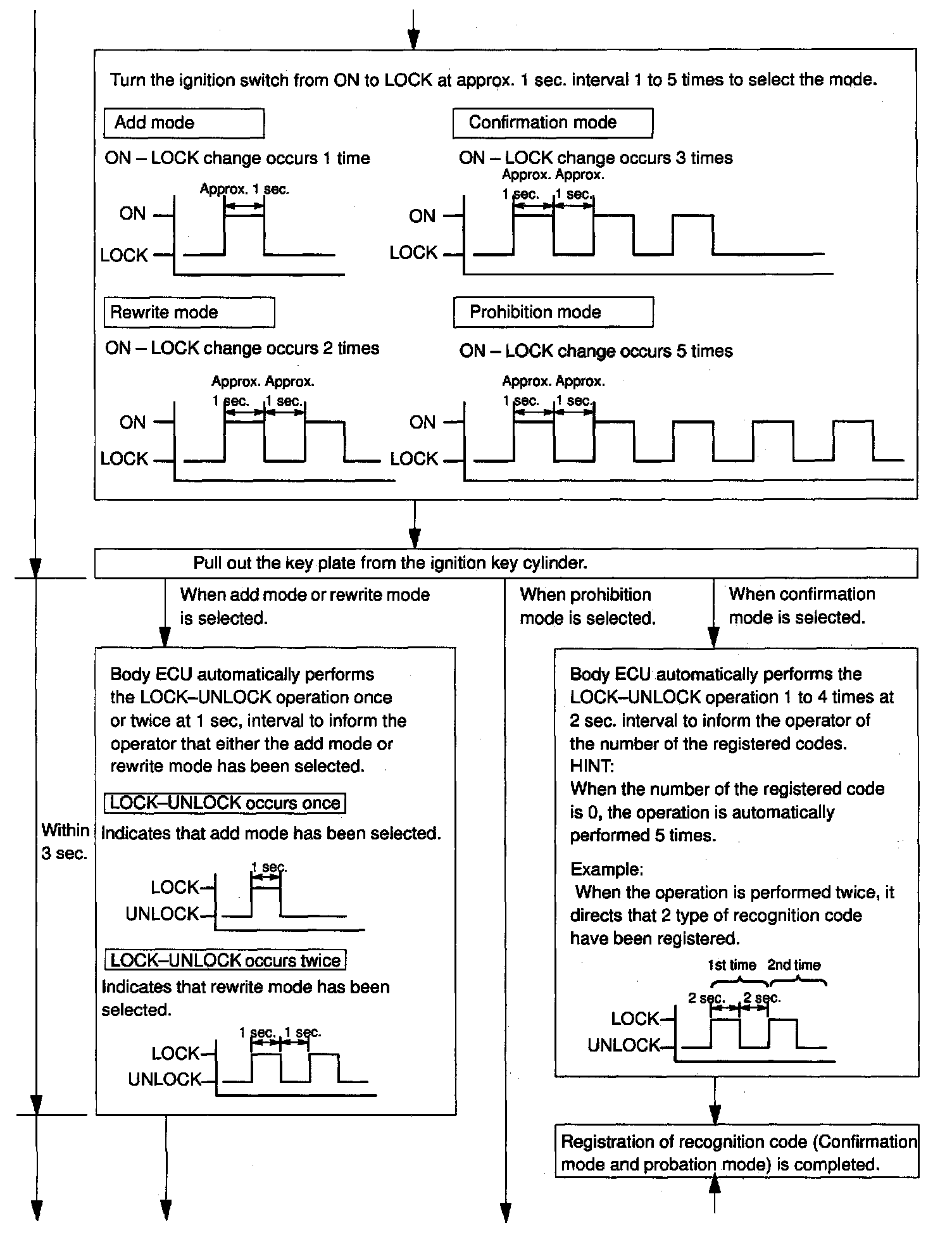 - The confirmation mode is for confirming few many recognition codes are already registered before you register additional recognition codes.