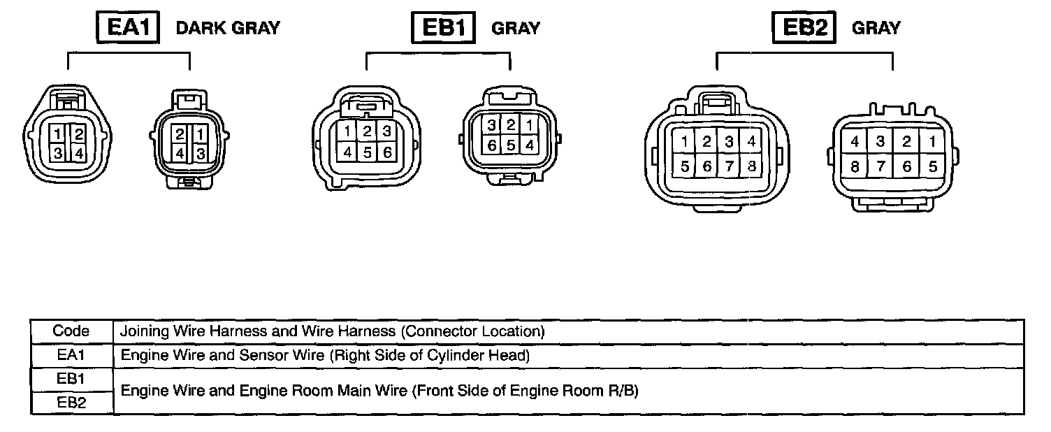 Under Hood Wire Harness To Wire Harness Connectors (EA1 - EB2):