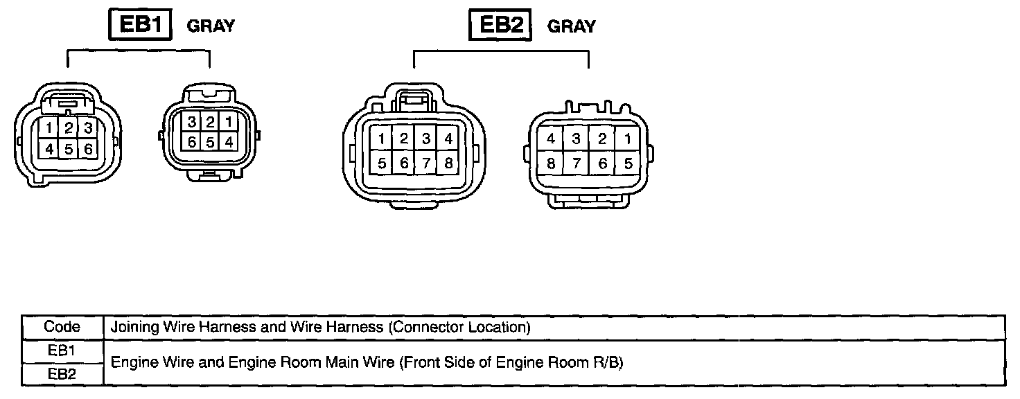 Under Hood Wire Harness To Wire Harness Connectors (EB1 - EB2):