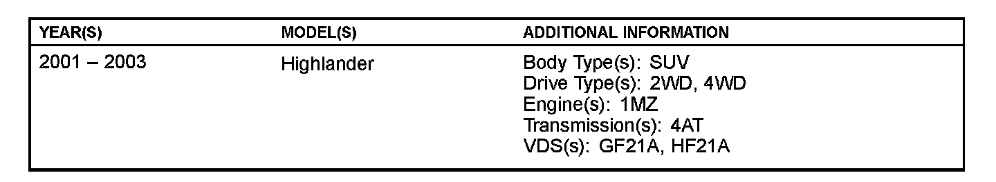 ^ Applicability has been updated to include 2001 and 2002 model years.