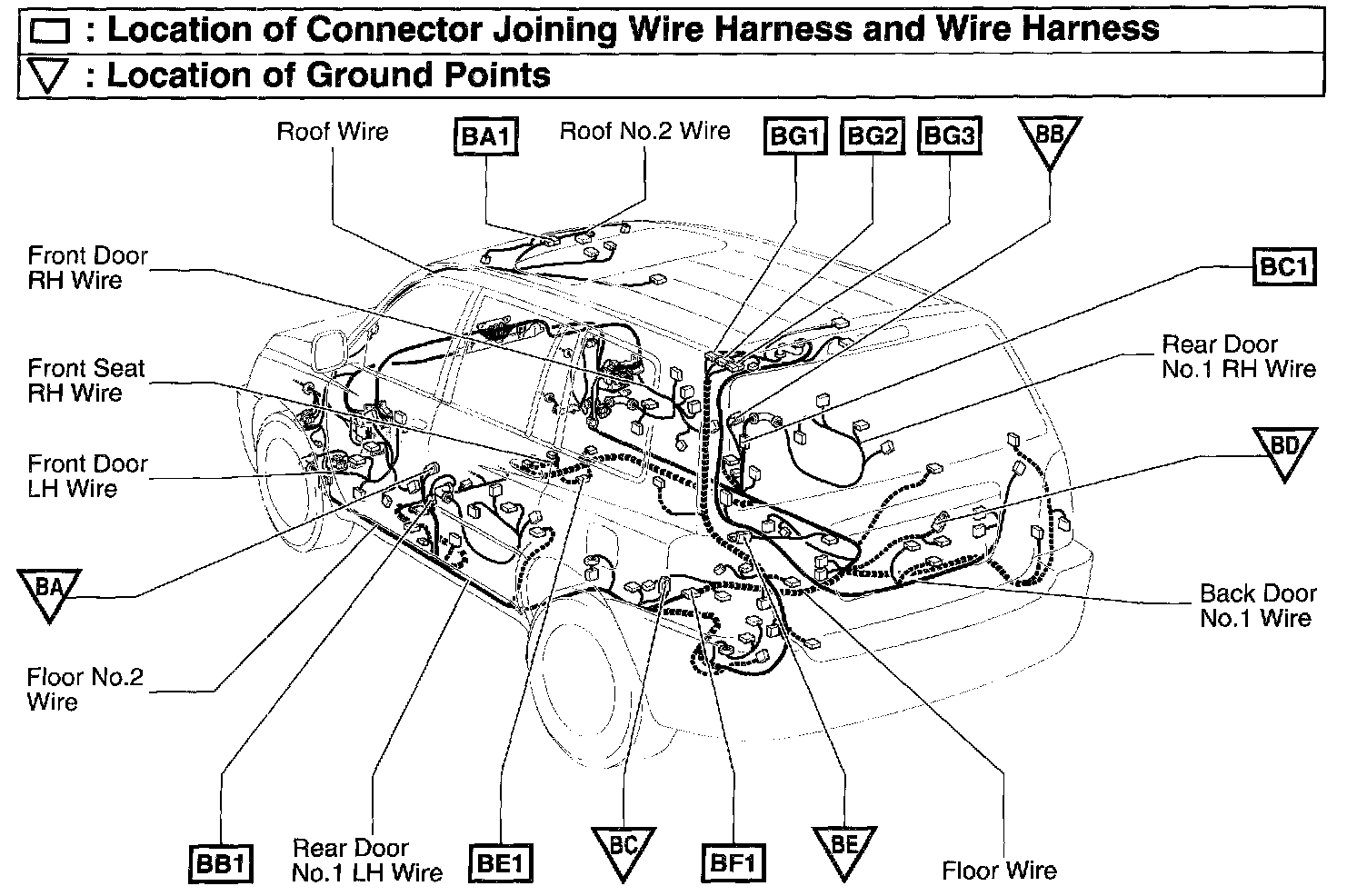 BG1 Back Door No.1 Wire and Floor No.2 Wire (Rear Left of the Roof)