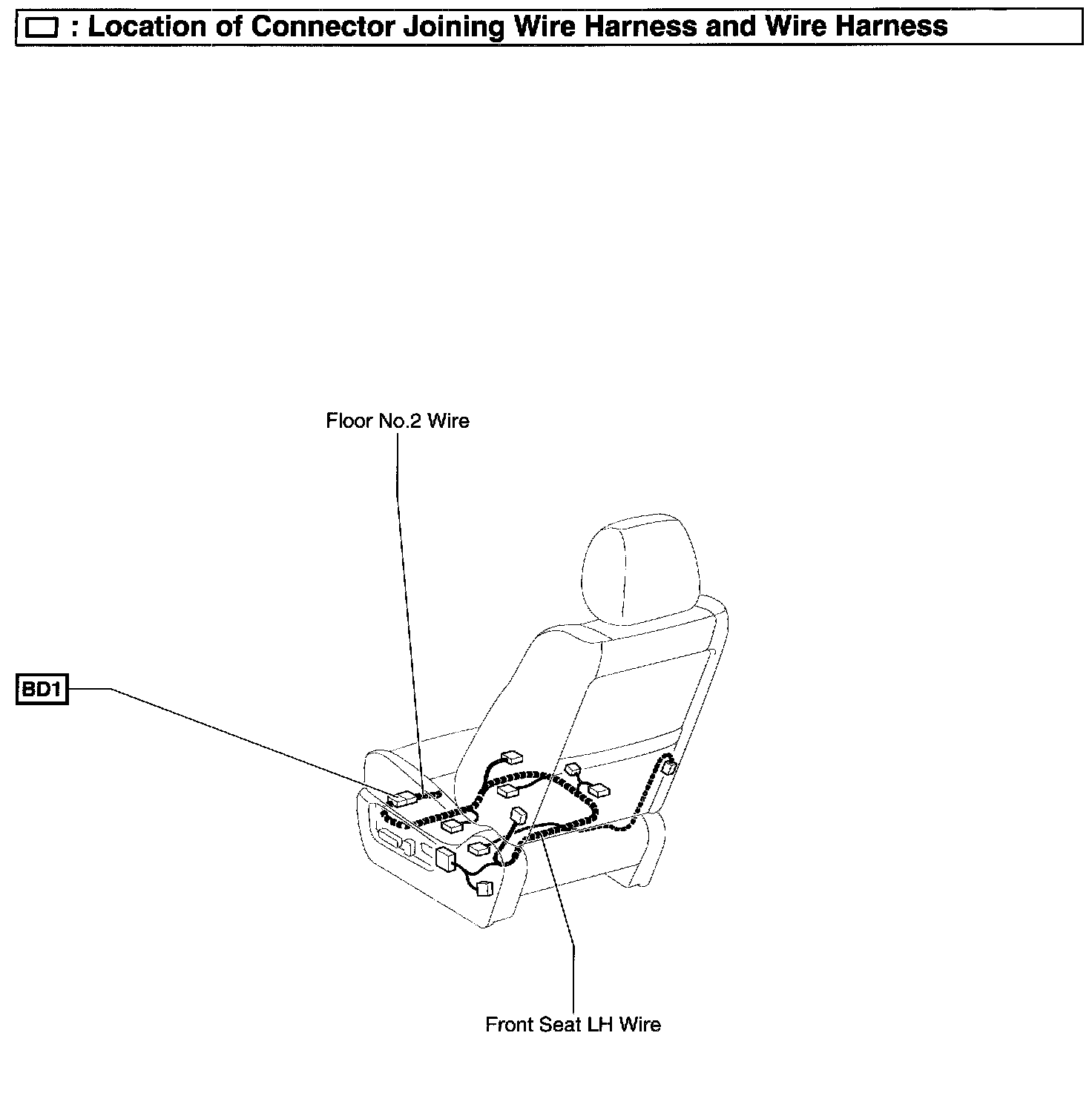 BD1 Floor No.2 Wire and Front Seat LH Wire (Under the Driver Seat)