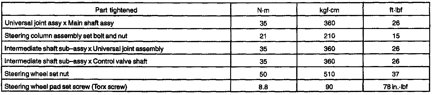 STEERING COLUMN SERVICE DATA:
