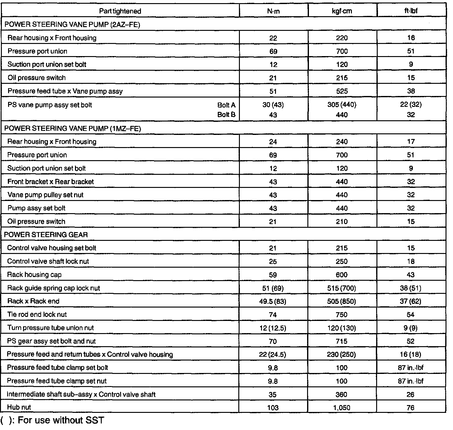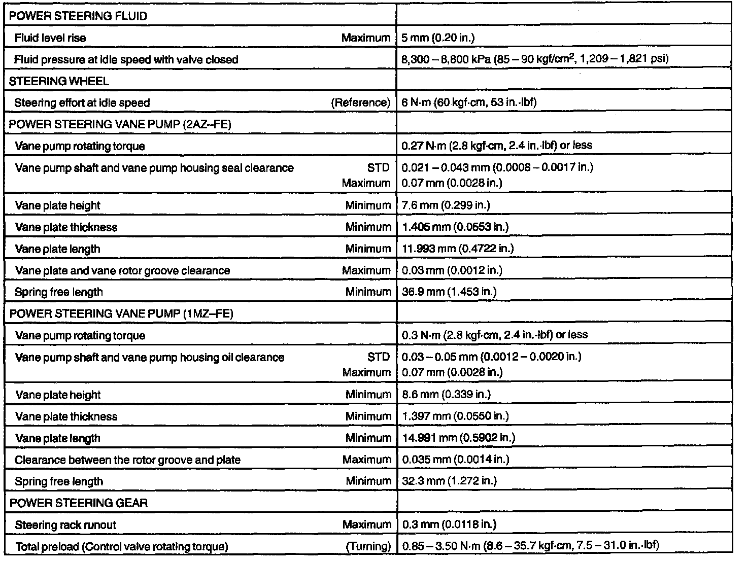 POWER STEERING SERVICE DATA: