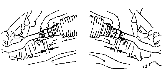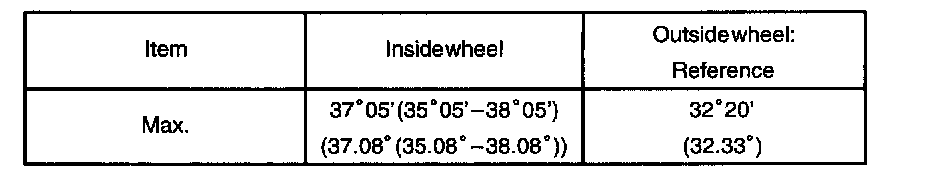 If the right and left wheel turning angles differ from the specified value, readjust the toe-in and wheel angle within the specified value. At this time, the right and left error lengths of the rack end may be less than 1.5 mm (0.059 inch).