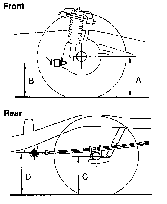 D: Ground clearance of leaf spring front hanger pin bolt center