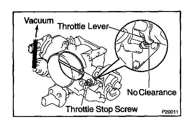 b. Check that there is no clearance between the throttle stop screw and throttle lever when the throttle valve is fully closed.