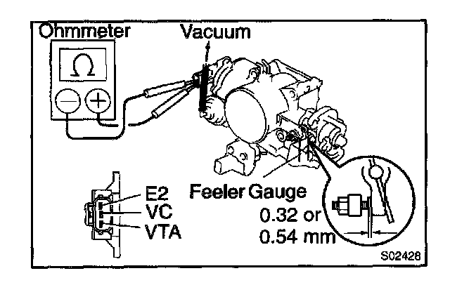 b. Insert a feeler gauge between the throttle stop screw and stop lever.