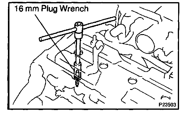 b. Using a 16 mm plug wrench, remove the 4 spark plug.