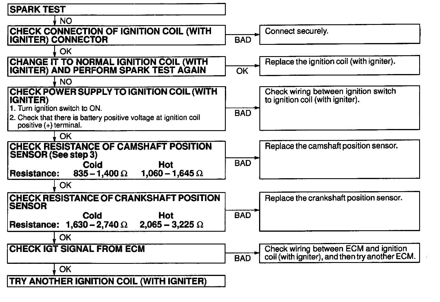 If the spark does not occur, do the test as shown.
