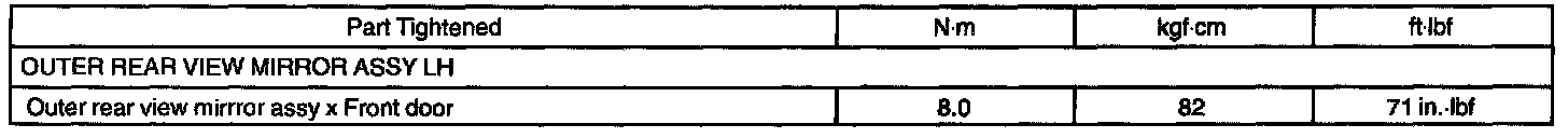 Windshield/WindowGlass/Mirror - Torque Specification: