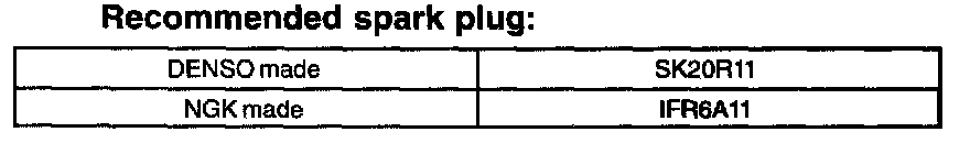 - Spark plug should be replaced every 200,000 km (12,000 miles).