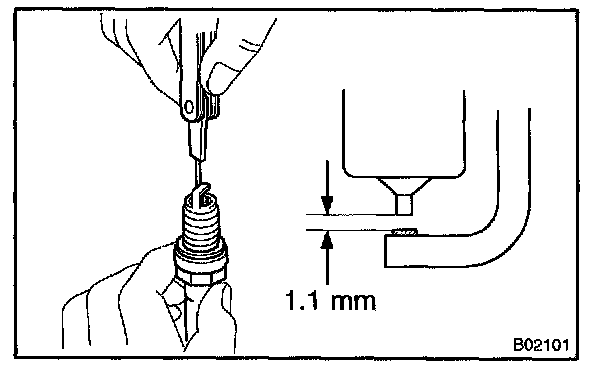 Correct electrode gap for new spark plug: 1.0 - 1.1 mm (0.039 - 0.043 in.)