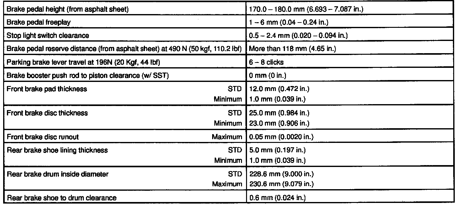 BRAKE SERVICE DATA: