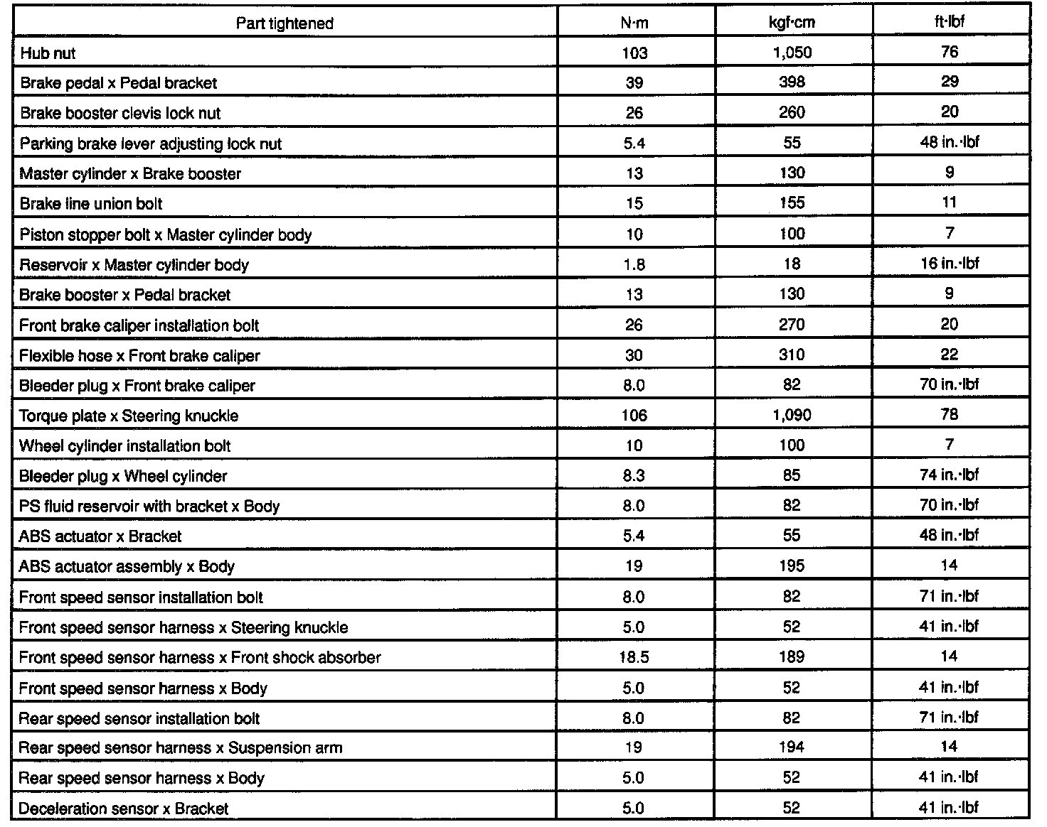 TORQUE SPECIFICATION: