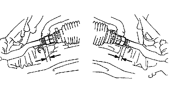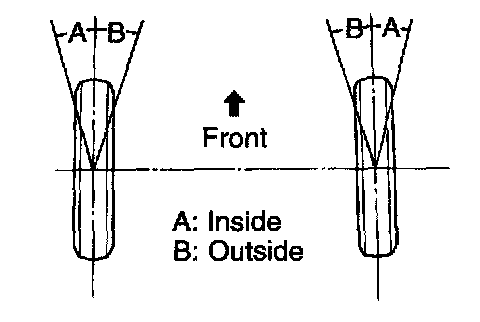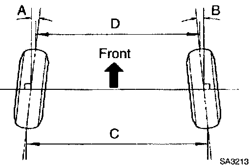 If the right and left wheel turning angles differ from the specified value, readjust the toe-in and wheel angle within the specified value. At this time, the right and left error lengths of the rack end may be less than 1.5 mm (0.059 inch).