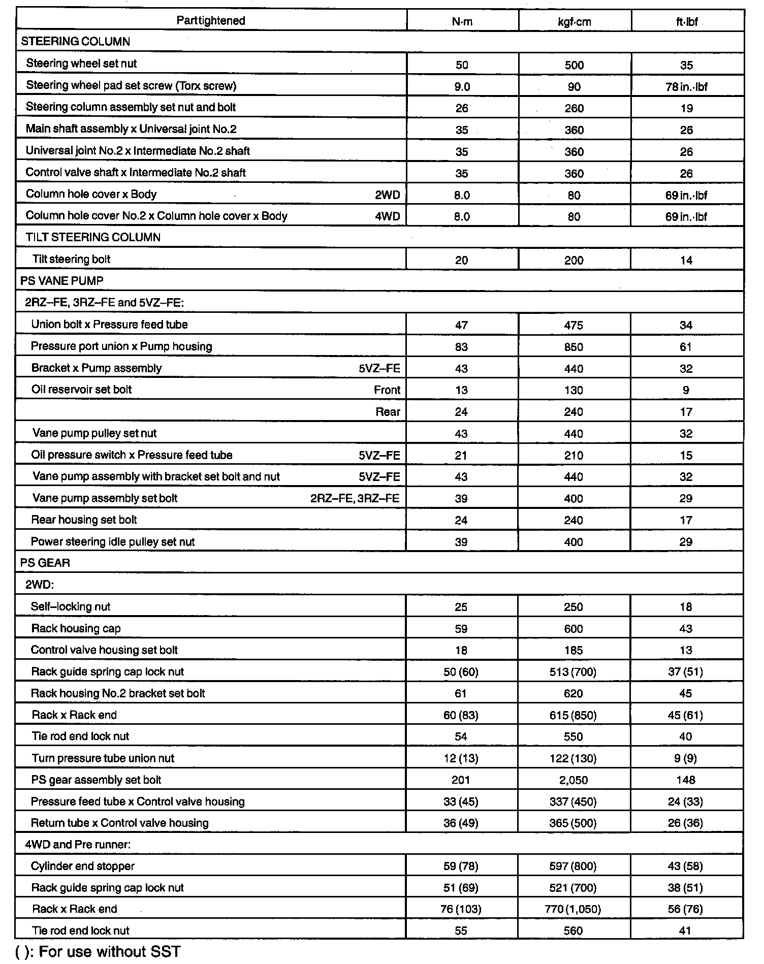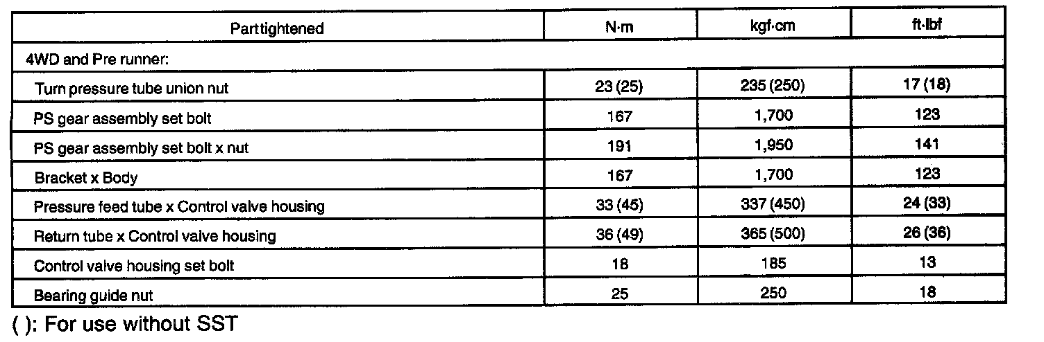 TORQUE SPECIFICATION
