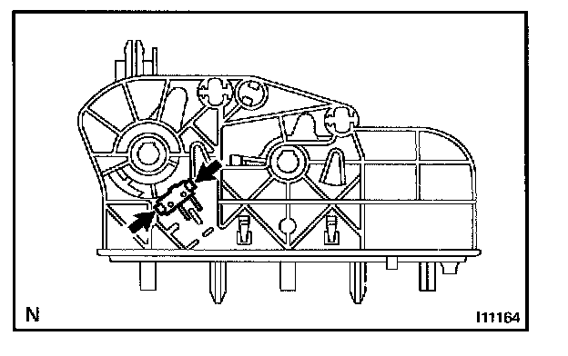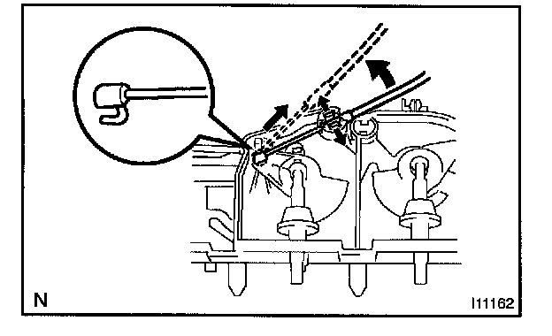 a. Using a screwdriver, spread the claw of the cable clamp and disconnect the outer cable.