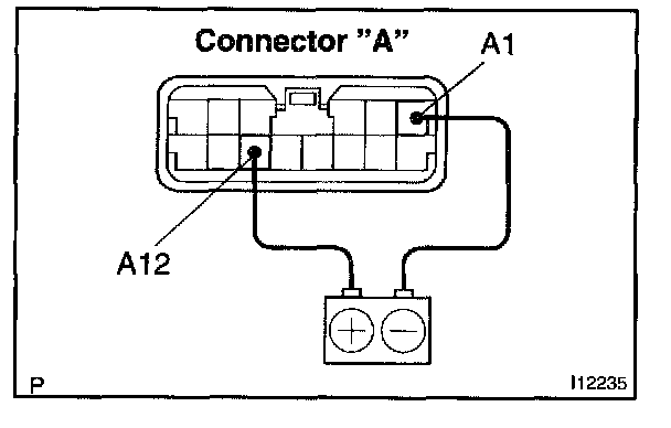 a. Connect the positive (+) lead from the battery to terminal A12 and negative (-) lead to A1.