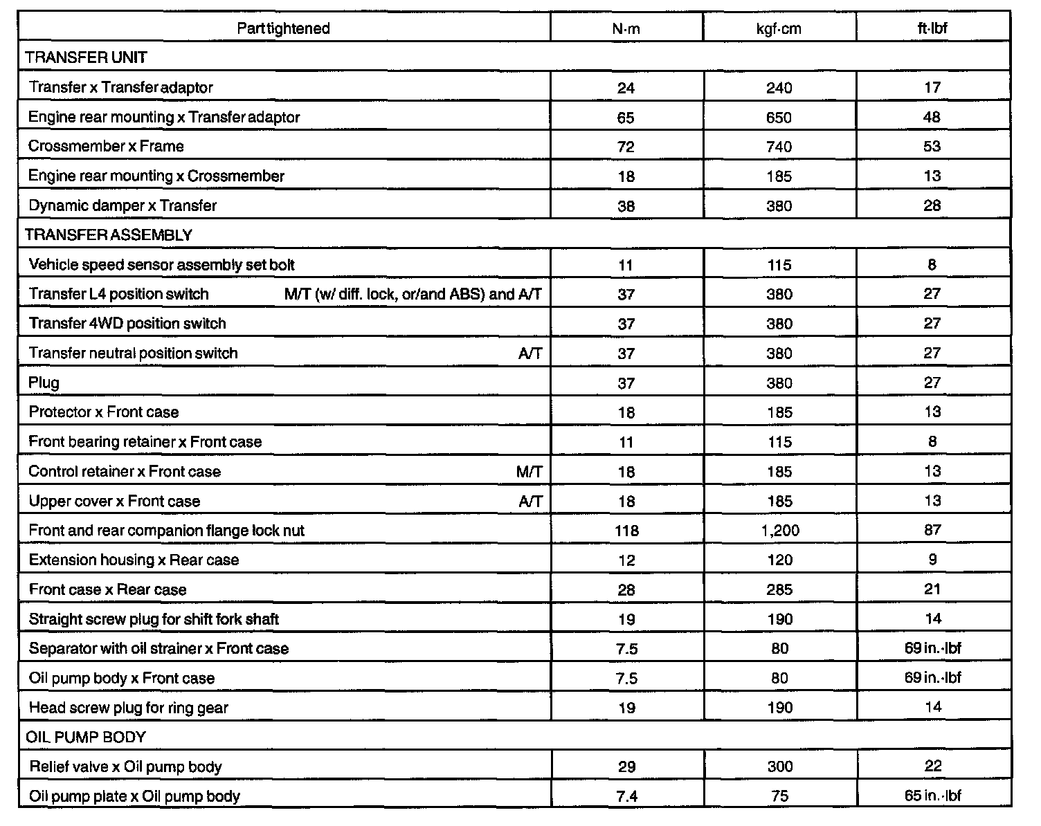 Torque Specification