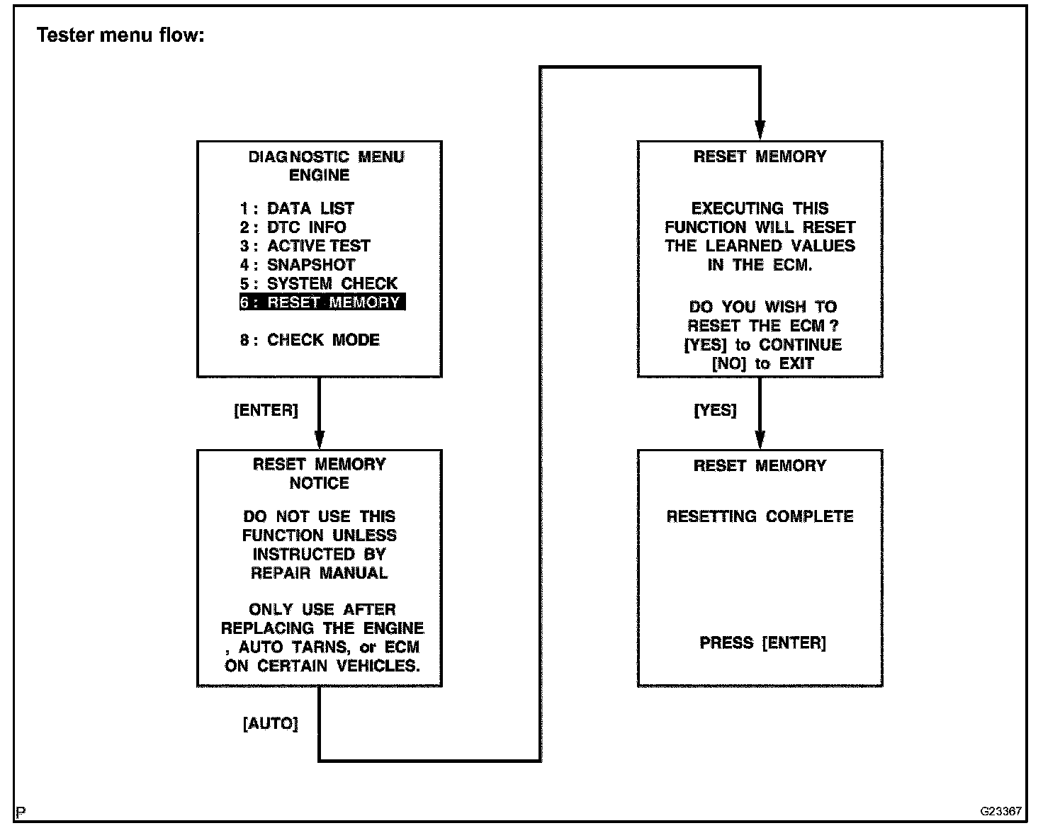 CAUTION: After performing the RESET MEMORY, be sure to perform the ROAD TEST described earlier.