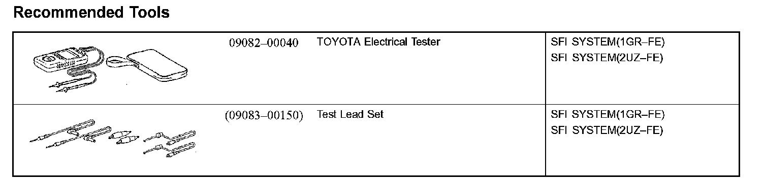 Engine Control System - Recommended Tools: