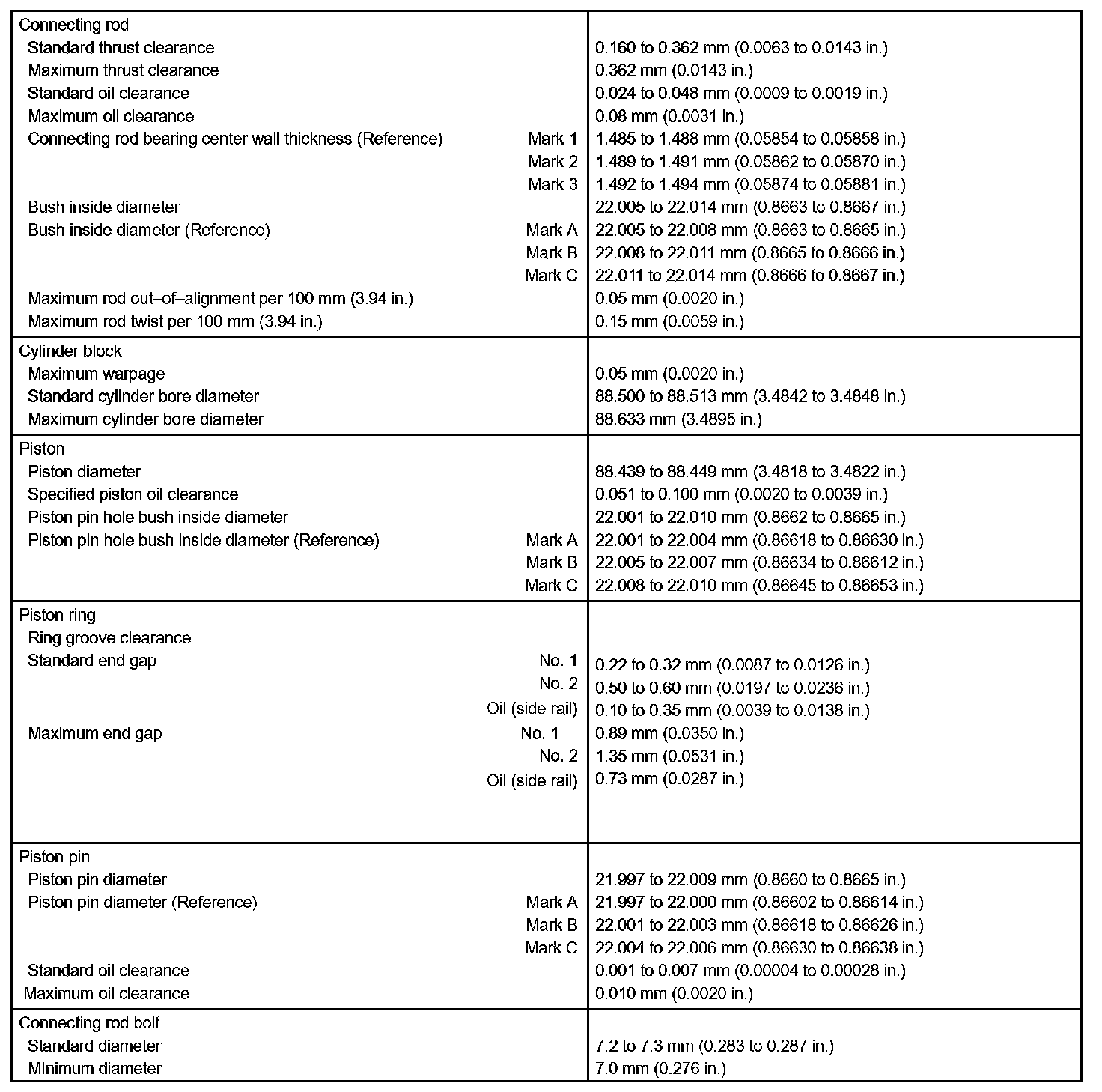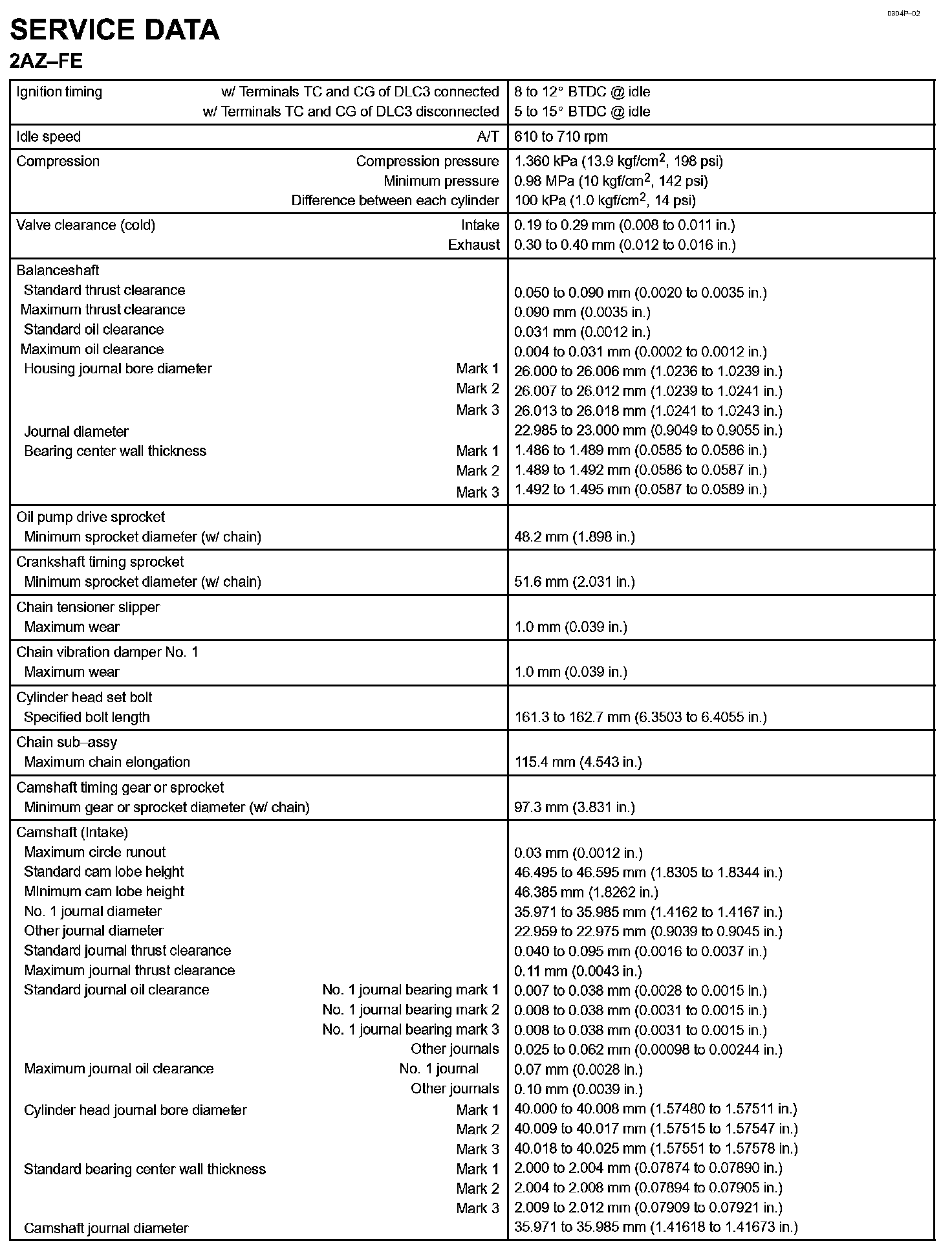 Engine Mechanical - Service Data Part 2: