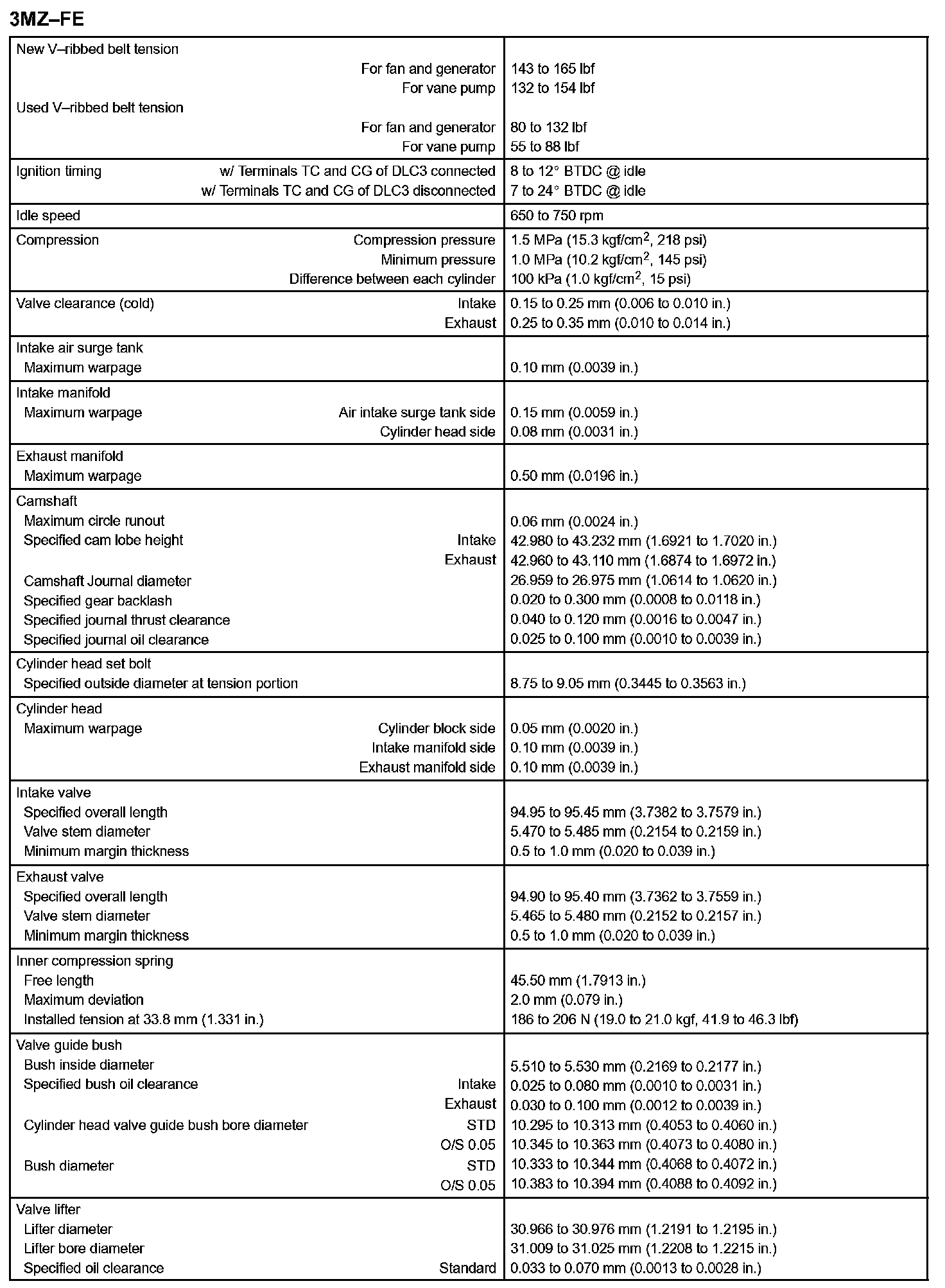 Engine Mechanical - Service Data Part 3: