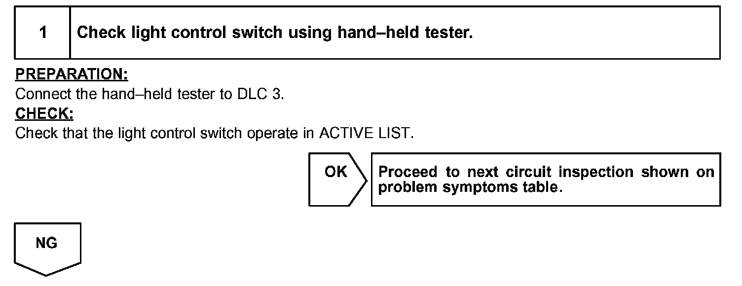 In case of using the hand-held tester, start the inspection from step 1 and in case of not using the hand-held tester, start from step 2.
