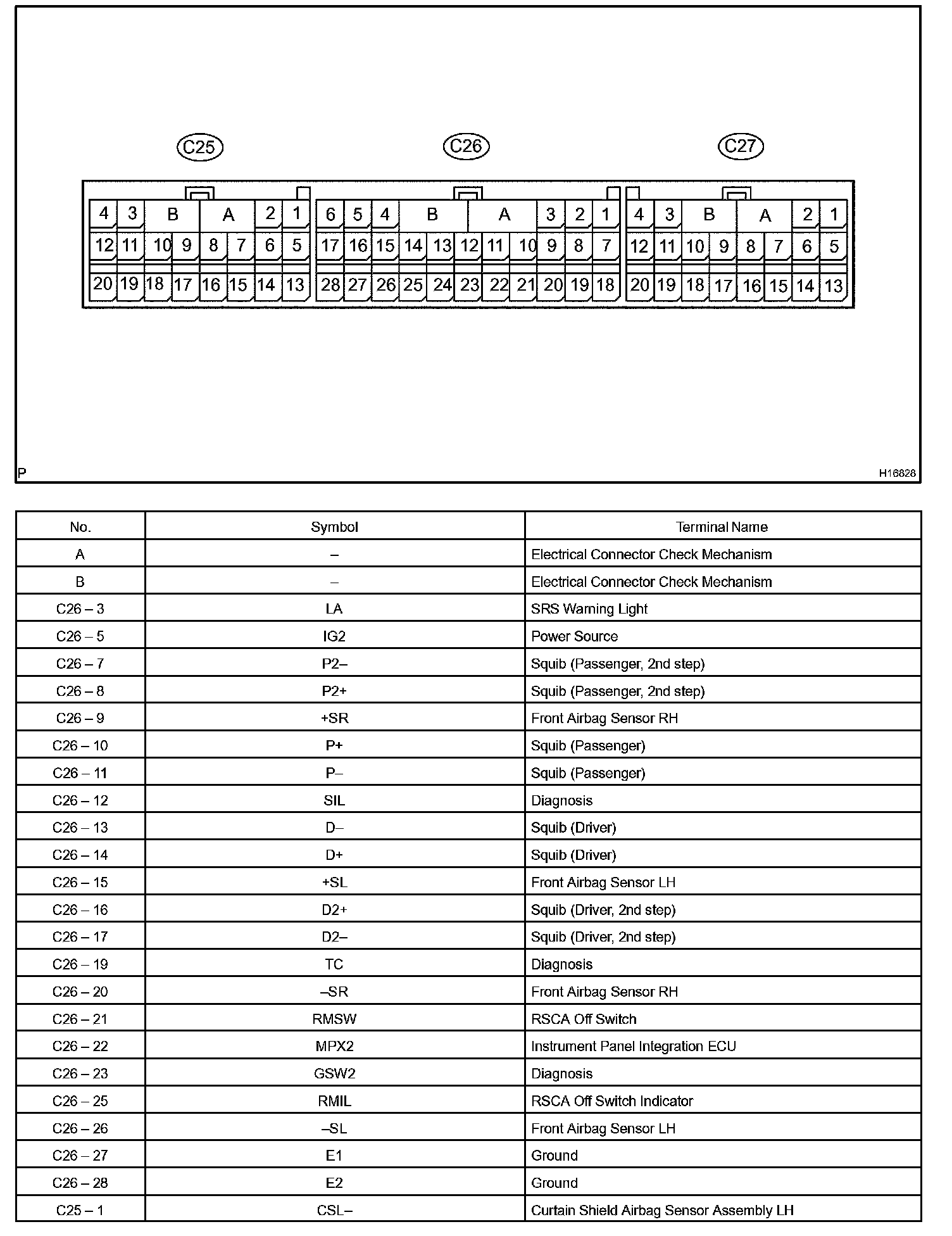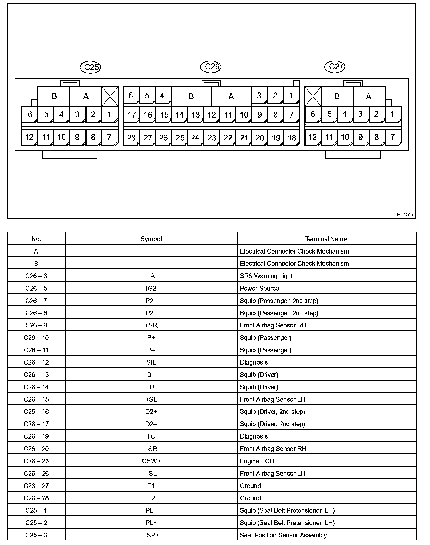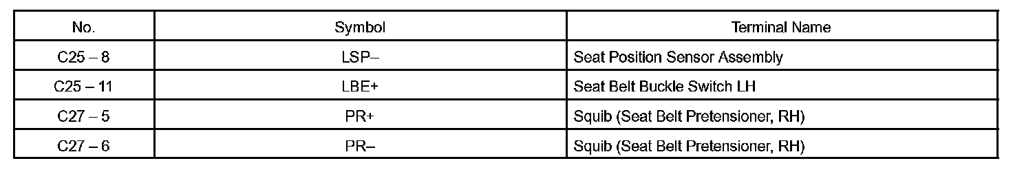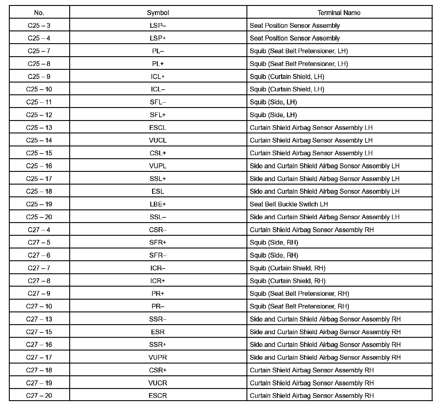 Terminals Of ECU/ Pinouts - W/ Side Airbag Part 2: