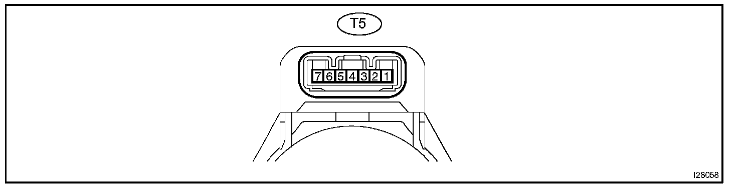 b. Reconnect the T5 amplifier connector, and measure the resistance or voltage of each terminal of the connector.