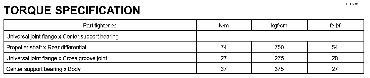 Propeller Shaft - Torque Specification:
