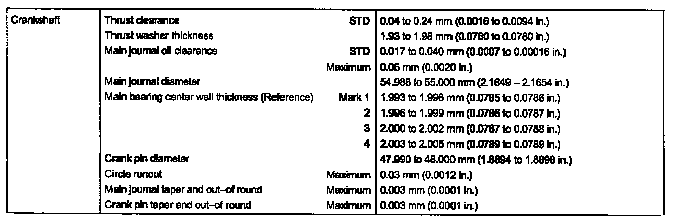 Maximum thrust clearance 0.30 mm (0.0118 inch)