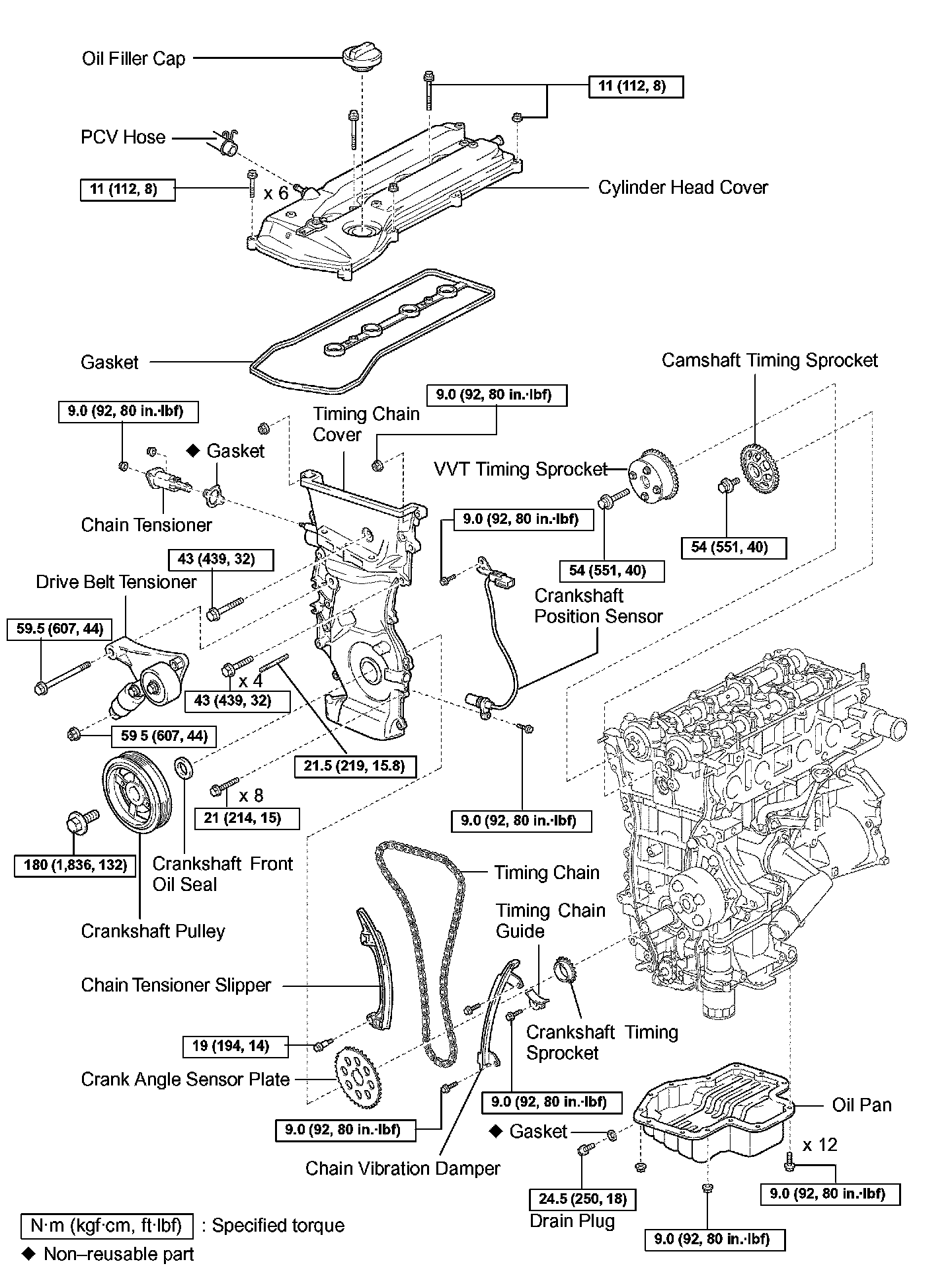 Crankshaft Pulley x Crankshaft 180 N.m (1,836 kgf.cm, 132 ft.lbf)